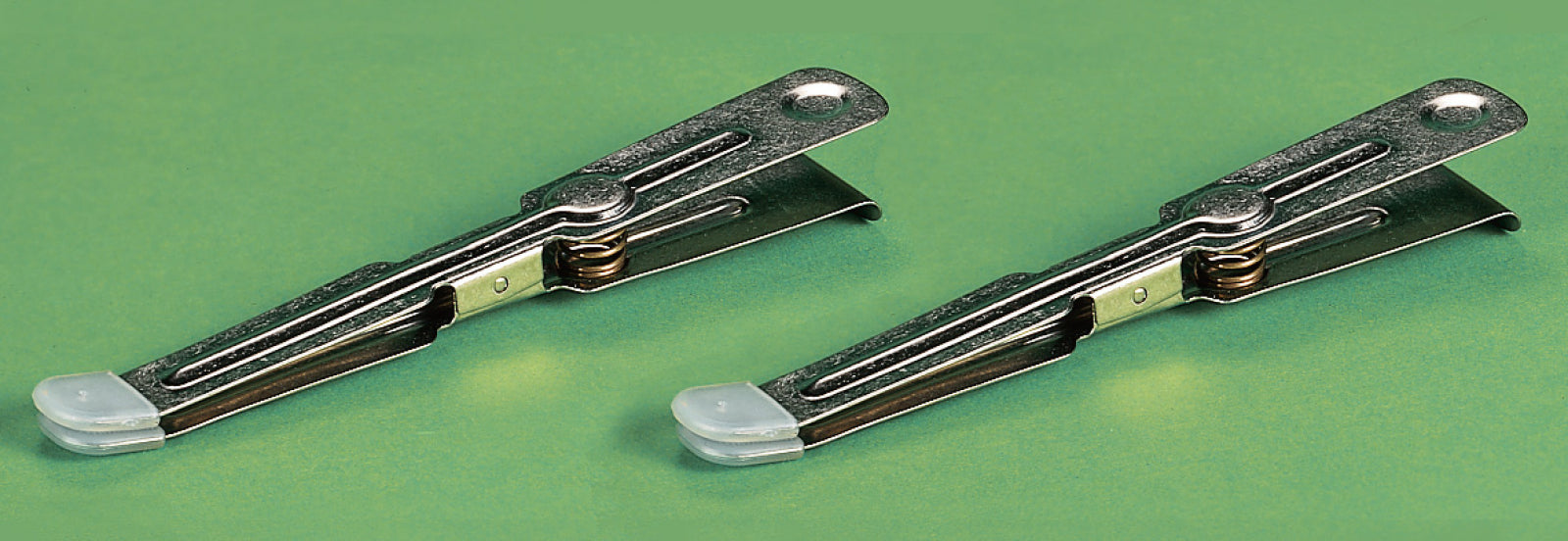 2 pinze in acciaio inossidabile, resistenti ai prodotti fotochimici. Con molla a spirale e gancio per appendere sul lato del vassoio. Con cappuccio di protezione appositamente studiati per la lavorazione di carte plastificate - Lunghezza: 150 mm - 2 pezzi