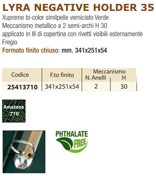 Codice produttore 25413710 - similpelle verniciato verde - Meccanismo metallico a 2 semi-archi H 30 - Formato finito chiuso: mm. 341x251x54